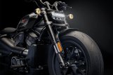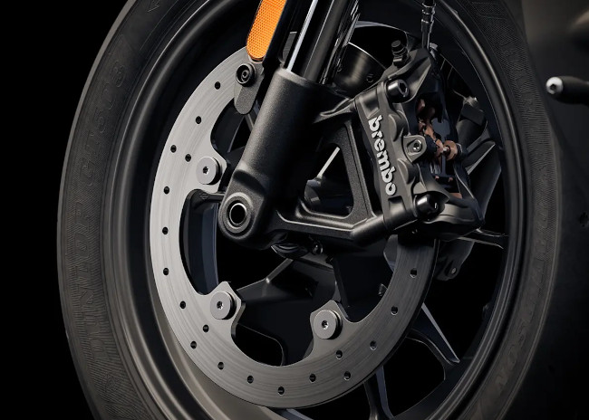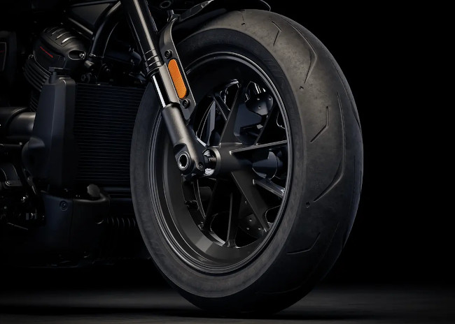 Der breite Vorderradreifen verleiht der Sportster S ihren aggressiven Look und bringt mehr Gummi auf die Straße für zusätzlichen Grip, egal ob Du durch dichten Verkehr fährst oder auf der Autobahn Gas gibst.