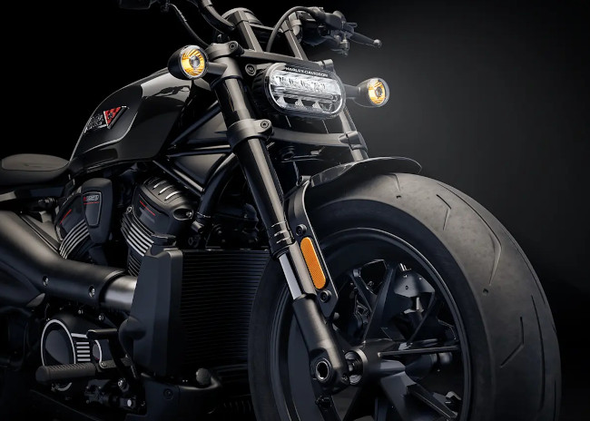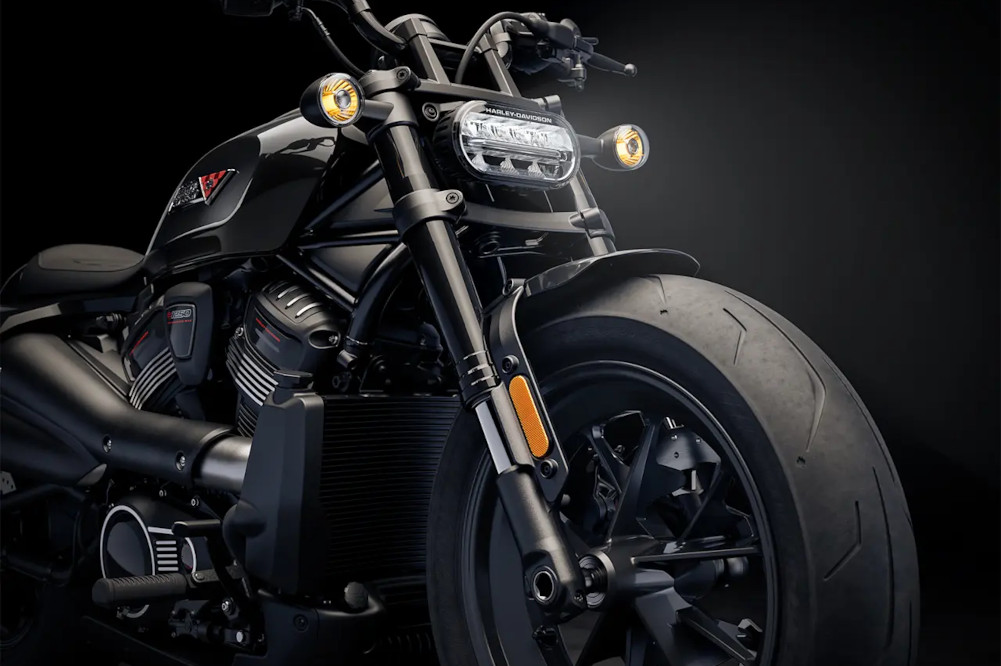 Die neu abgestimmte Vorderradgabel harmoniert perfekt mit der verbesserten Hinterradfederung – so lässt sich die Sportster S in den Kurven hart rannehmen.