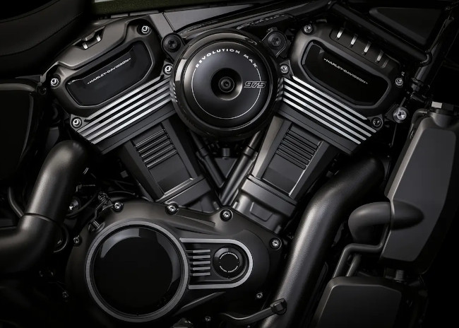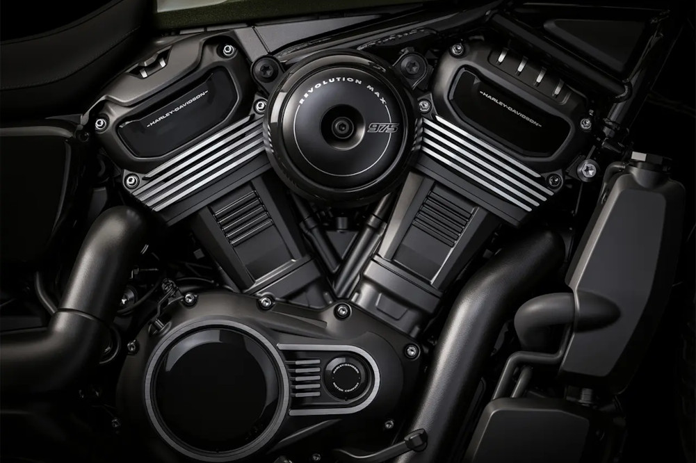 Der Revolution Max 975T-Motor ist komplett tiefschwarz, mit kontrastierenden matten und glänzenden Finishes und neu gestalteten, nicht hervorgehobenen Kühlrippen, was ihm ein aggressives Aussehen verleiht.