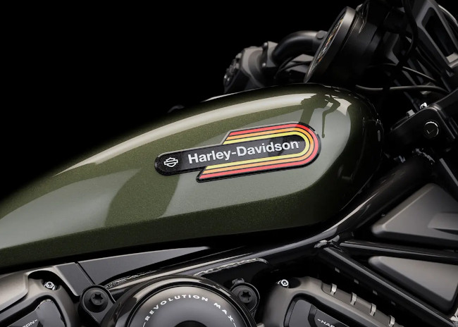 Eine flache Linie von Tank zum Kotflügel und ein erdnussförmiger Luftfilterdeckel greifen die klassische Sportster DNA auf, ergänzt durch eine vom Stil der 1970er Jahre inspirierten Tankgrafik.