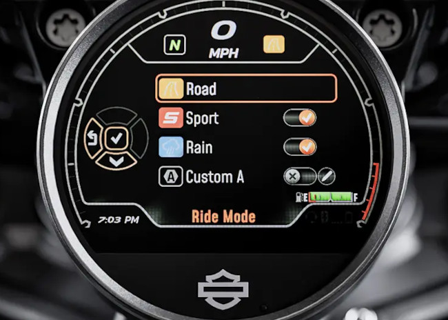 Mit den Fahrmodi Straße, Regen, Sport und zwei benutzerdefinierten Modi passt sich die Nightster Special sofort Deinem Fahrstil und dem Terrain an, auf dem Du unterwegs bist. ABS, Antriebsschlupfregelung, Schleppmomentregelung, TPMS und eine serienmäßige Geschwindigkeitsregelanlage sorgen für Vertrauen und Komfort, egal ob Du mit dem Motorrad über die Autobahn fährst oder den Sonnenuntergang auf einer Landstraße genießt.