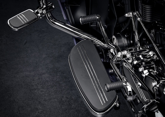 Beheizte Lenkergriffe, Highway-Fußrasten und ein Fersenschalthebel geben Dir den nötigen Raum und Komfort, um Dich auf langen Fahrten wohl zu fühlen. Gleichzeitig macht die Reduzierung des Gewichts der 2026er Road Glide Limited um 5 kg alles ein bisschen leichter, geschmeidiger und besser unter Kontrolle. Diese Merkmale sorgen zusammen dafür, dass sich das Motorrad leichter bedienen lässt und Du entspannter fahren kannst.