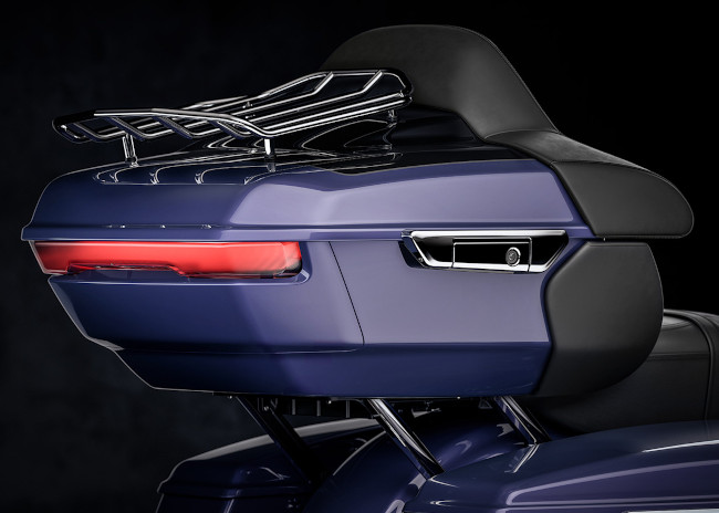 Das Grand Tour-Pak hat für 2026 ein neues Design erhalten und integriert jetzt Lautsprecher-Einsätze, bündige LED-Leuchten, eine Sozius-Rückenlehne und einen Gepäckträger für komfortable Fahrten zu zweit und einen klaren, durchgängigen Stil. Der Stauraum und der Komfort der neuen Road Glide Limited sind unübertroffen.